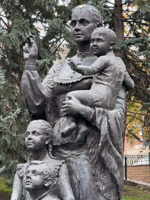 Установленный в 2015 году памятник со множеством деталей. На небольшом постаменте, в красивом, не историческом месте, сразу за питьевой галереей. Не выставленное на всеобщее обозрение, как многие современные арт-объекты, произведение искусства. Наверное, это правильно.